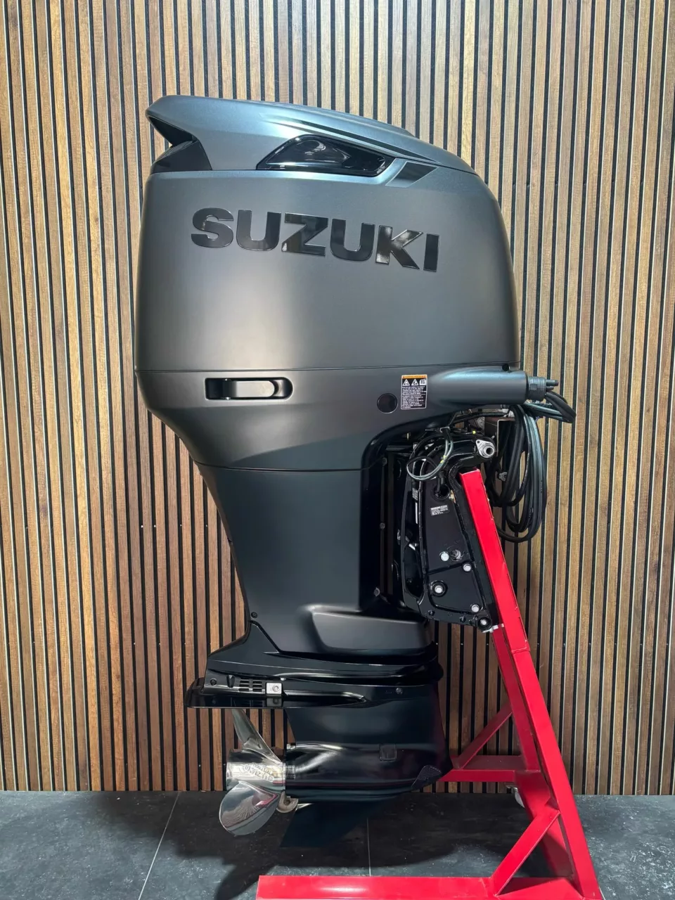 The latest model Suzuki 250 HP Outboard engine with the unique matt black paint.